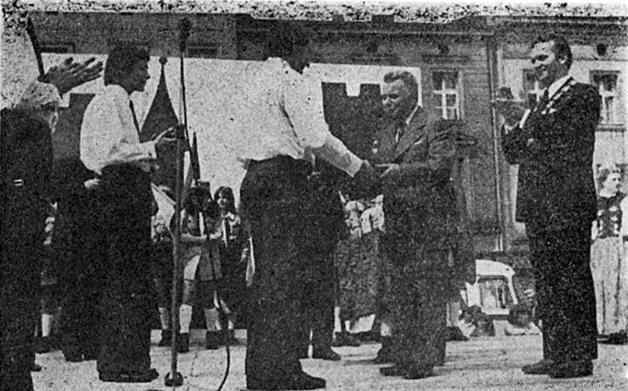 i Prezydent Miasta mgr Zygmunt Brzeziński odbierają meldunki produkcyjne młodzieży