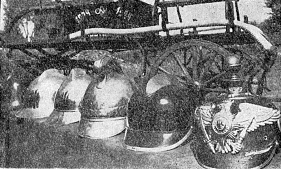 - zabytkowe hełmy strażackie i sprzęt z końca XIX wieku i początku XX wieku