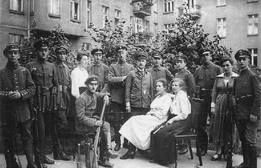 BauvereinGrupa Niemców z sanitariuszkami na podwórku przed Bauvereinem