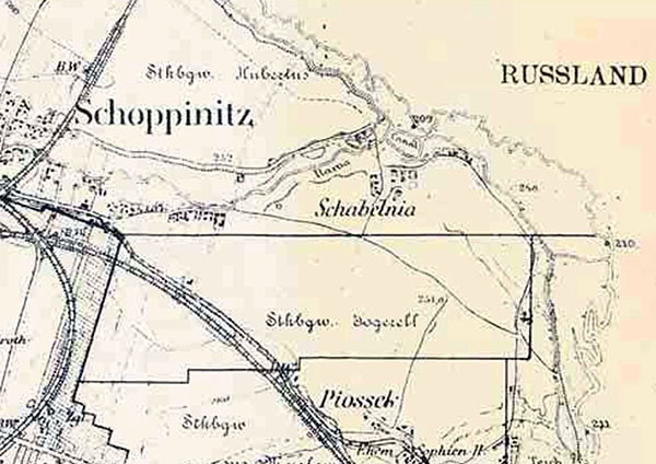 SzabelniaWidok Szabelni na mapie poglądowej pól górniczych kopalni „Giesche” z roku 1904