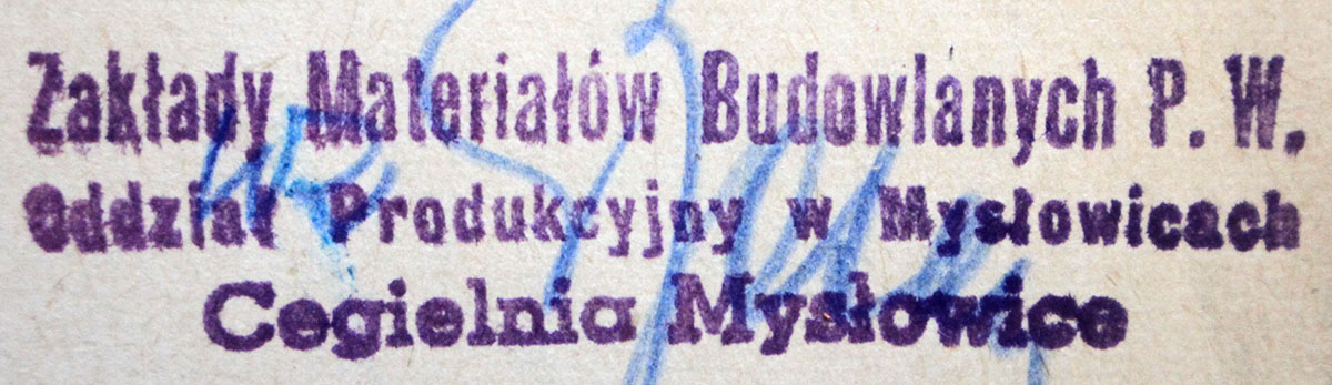 Zakłady Materiałów Budowlanych P.(rzemysłu) W.(ęglowego) - Oddział Produkcyjny w Mysłowicach - Cegielnia Mysłowice (1950) Cegielnia Mysłowice 1950