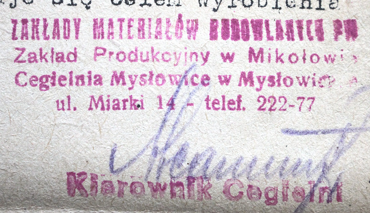 Zakłady Materiałów Budowlanych P.(rzemysłu) W.(ęglowego) - Oddział Produkcyjny w Mysłowicach - Cegielnia Mysłowice (1951) Cegielnia Mysłowice 1951
