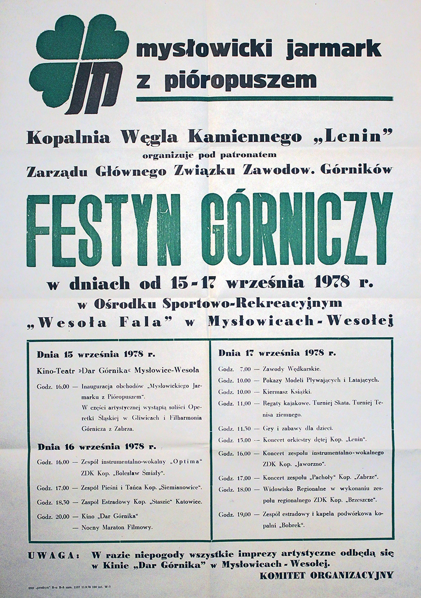 W dzielnicy Wesoła odbyło się „Obgrywanie Śląskie” czyli przemarsz ulicami orkiestry kopalni „Lenin”. W ośrodku „Wesoła Fala” odbył się Festyn Górniczy pod patronatem Zarządu Głównego ZZG. W Kino-Teatrze „Dar Górnika” wystąpił Zespół instrumentalno-wokalny „Optima” ZDK kop. „Bolesław Śmiały”, następnie Zespół Pieśni i tańca kop. „Siemianowice”, po nim Zespół Estradowy Kop. „Staszic” Katowice a na koniec odbył się Nocny maraton filmowy.