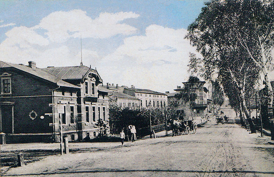 Szkoła II. po lewej stronie stary, po prawej nowy budynek. (1928)