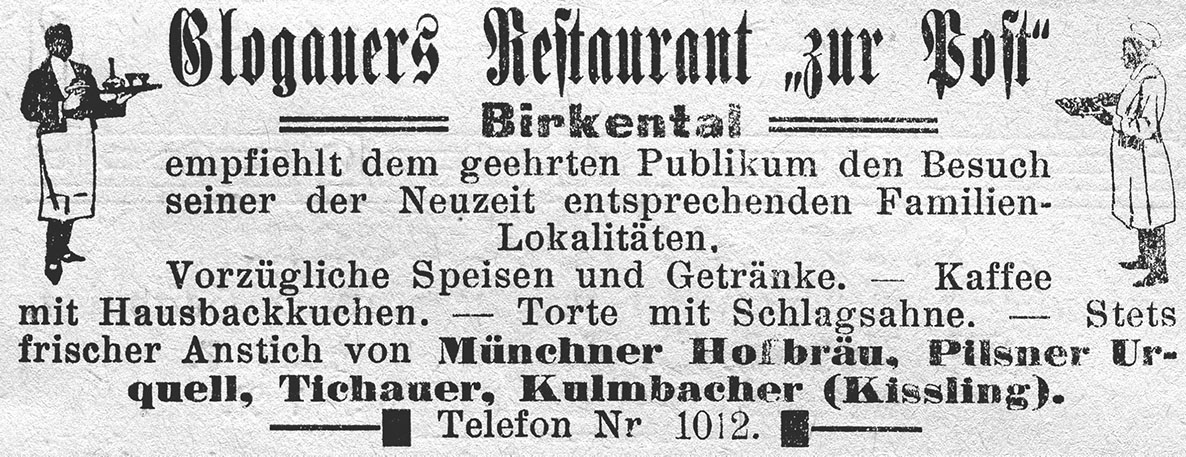 Reklama restauracji z 1908 roku - Myslowitzer Anzeiger