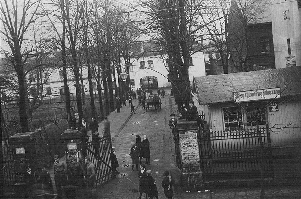 Dziedziniec dawnej fabryki lnu w latach 30-tych XX w.