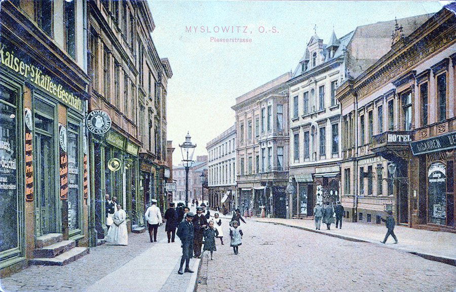 Po lewej kamienica Pszczyńska 12 z ok. 1914 roku,