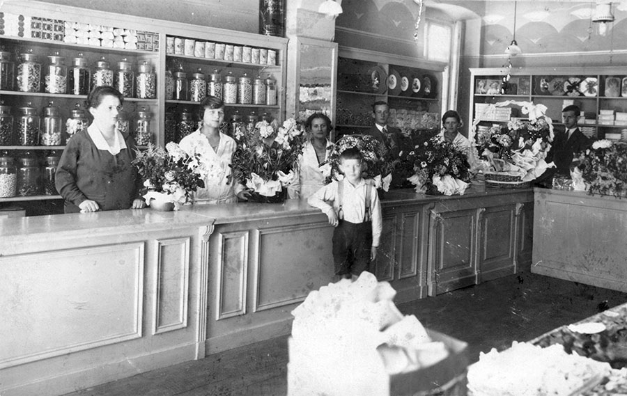Rodzina Czerneckich wraz z pracownikami w swoim sklepie na Pszczyńskiej 21.