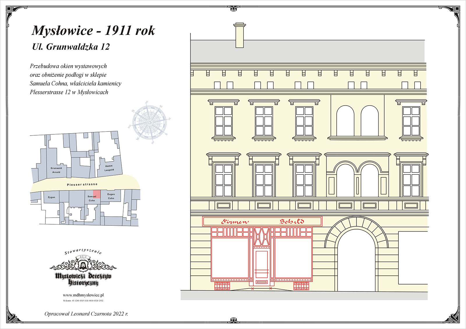 W tamtym czasie do wybuchu wojny w kamienicy funkcjonował skład wyrobów tytoniowych, który prowadził Paweł Czernecki. W drugim lokalu prowadził skład Gerard Kaczmarczyk. Po wyparciu wojsk niemieckich z Mysłowic jeszcze w kwietniu 1945 roku o dawny skład (sklep) ubiegał się Jan Pałasz. Urząd Miasta sporządził na tą okoliczność spis inwentarza opisany jako „spis inwentarza w składzie tytoniowym w Mysłowicach przy ul. Pszczyńskiej 12 po Czerneckim: