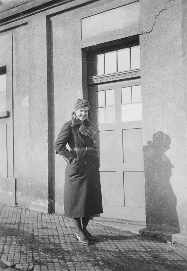 Helena Czernecka żona Pawła przez budynkiem fabrycznym na ul. Jagiellońskiej.