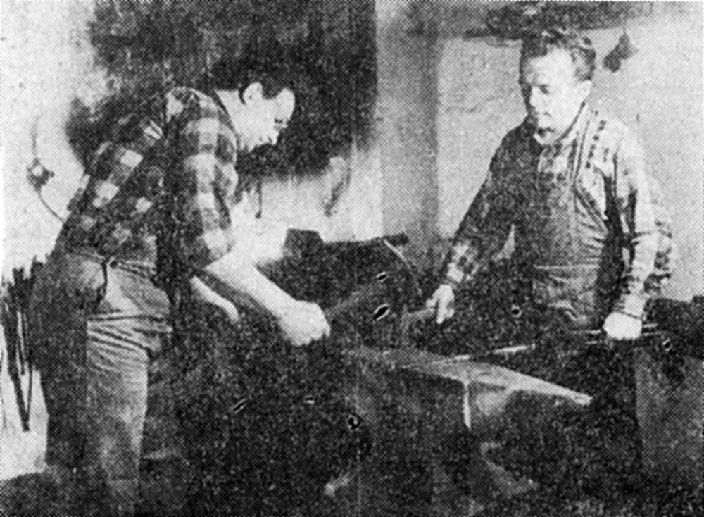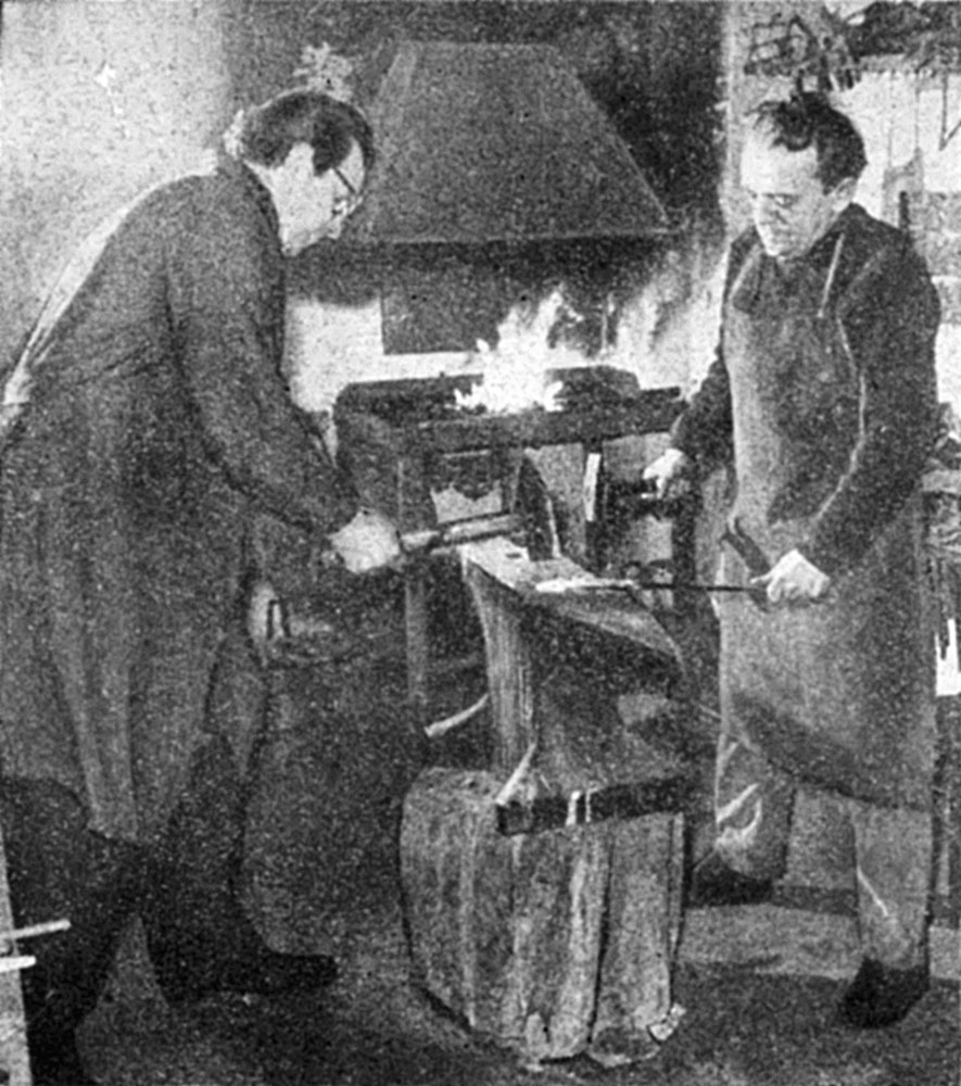 Kamieński i Włodarski przy pracy w kuźni na ul. Powstańców 13.