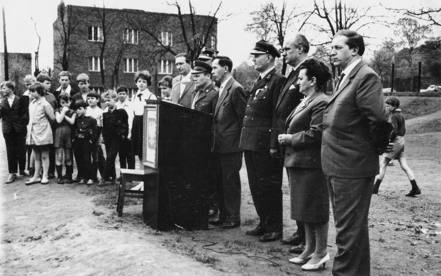 Widok na szkołę od strony dawnej ulicy Sienkiewicza w 1959 roku.