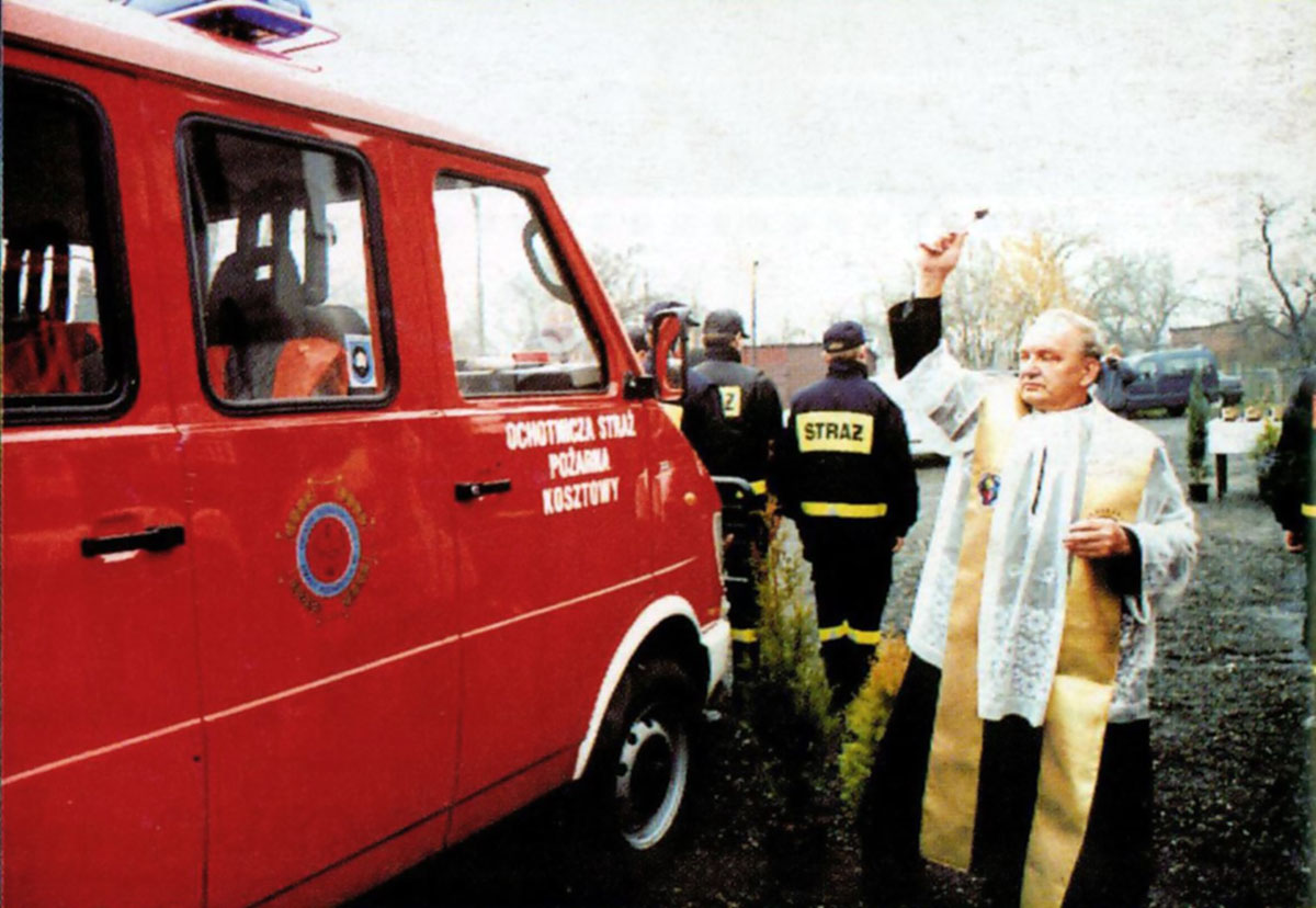 Jednostka Ratowniczo-Gaśnicza OSP w Mysłowiach-Kosztowach otrzymała nowy bojowy wóz strażacki. Został on przekazany kosztowskim strażakom przez władze miasta Mysłowice 26 listopada br. kluczyki do nowego nabytku wręczył komendantowi OSP Witoldowi Sowie prezydent Zbigniew Augustyn w obecności przewodniczącego RM Edwarda Lasoka, wiceprezydenta Edwarda Witkowskiego oraz prezesa Zarządu Wojewódzkiego Związku OSP, Alojzego Gąsiorczyka. Nowy strażacki wóz został poświęcony przez zaproszonych księży – ks. Antoniego Czaplę, ks. Wiktora Zajusza i ks. Pawła Bula – by dobrze służył kosztowskiej jednostce. OSP Kosztowy są drugą w tym roku jednostką po Dziećkowicach, której miasto przekazało taki prezent o niemałej wartości – bo ponad 100 tys. zł.