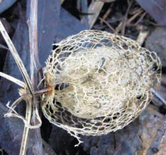 Mijamy liczne suche pędy wiesiołków oraz amerykańskich nawłoci. Rodem z ameryki jest także robią ca za jednoroczną lianę kolczurka klapowana. Bardzo malownicze są jej jajowate owoce, kiedy ostały się z nich jedynie siatkowate nerwy. Teraz można je zbierać i po wysuszeniu użyć do kompozycji kwiatowych.