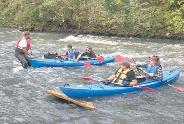 Załogi – 9 kajaków – popłynęły z Trójkąta Trzech Cesarzy aż do Dziećkowic, gdzie zakończono sprzątanie, a potem bawiono się przy remizie. Pomysł tego przedsięwzięcia wyszedł od znanych Mysłowicom kajakarzy – Jacka i Moniki Parisów.