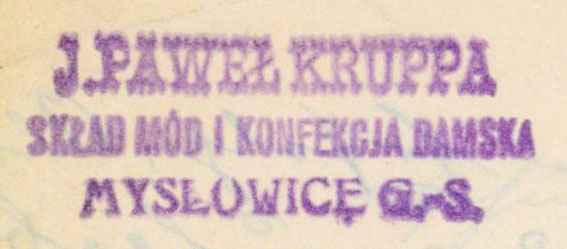 J. Paweł Kruppa - Skład mód i konfekcja damska, Mysłowice G.-S. - 1933   J. Paul Kruppa 1933