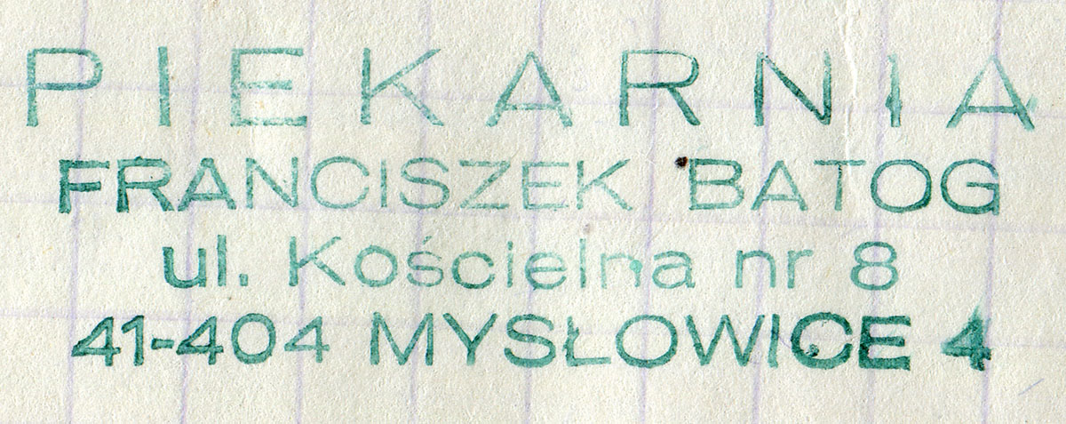 Piekarnia - Franciszek Batog, ul. Kościelna nr 8, 41-404 Mysłowice 4 (1984)   Piekarnia Batog 1984
