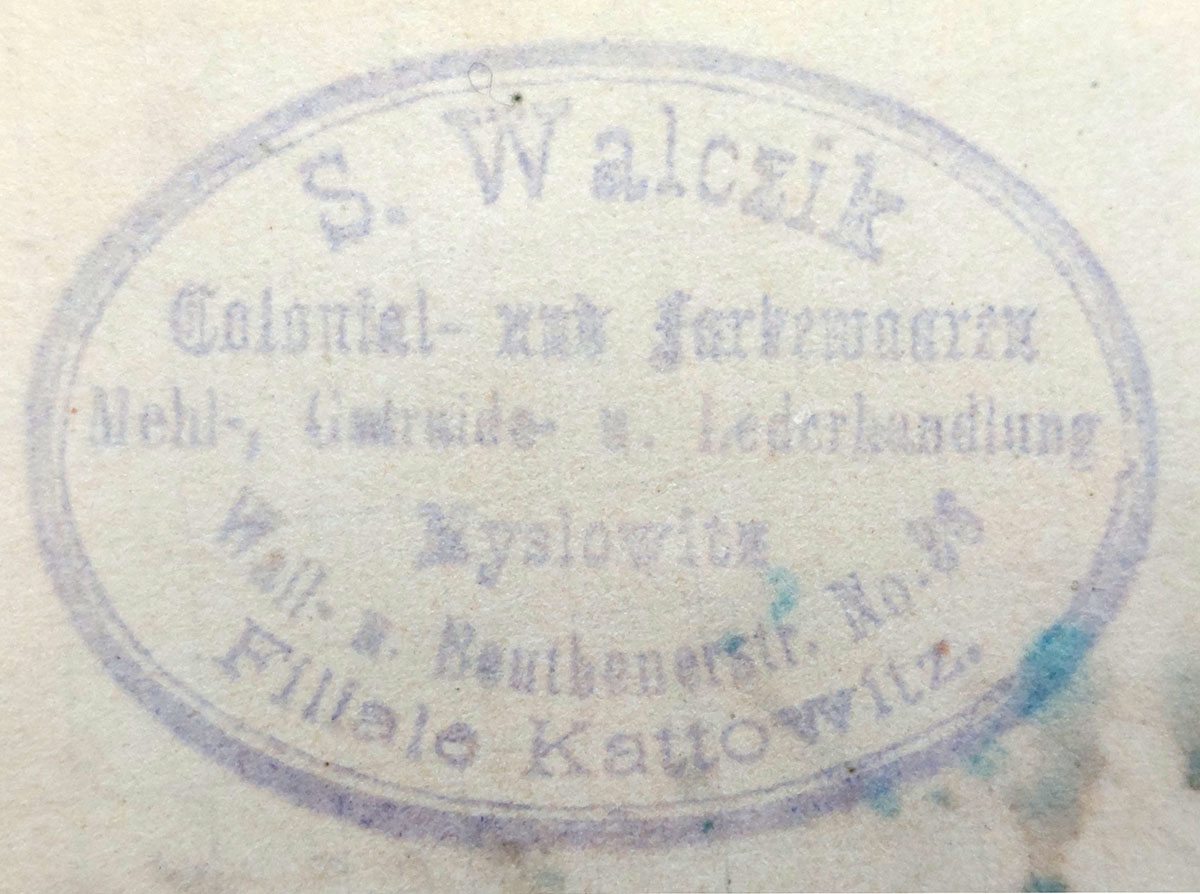 Wall- u. Beuthenerstr. No. 35 Myslowitz - Filiale Kattowitz   S. Walczik