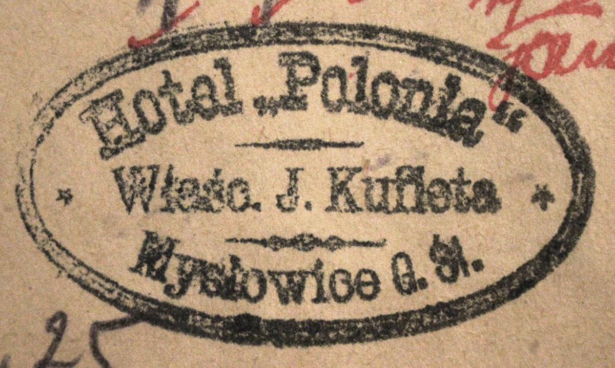 Hotel "Polonia" właść. J. Kufieta Mysłowice G. Śl. Sprzedaż wyrobów tytoniowych Mańka 1928