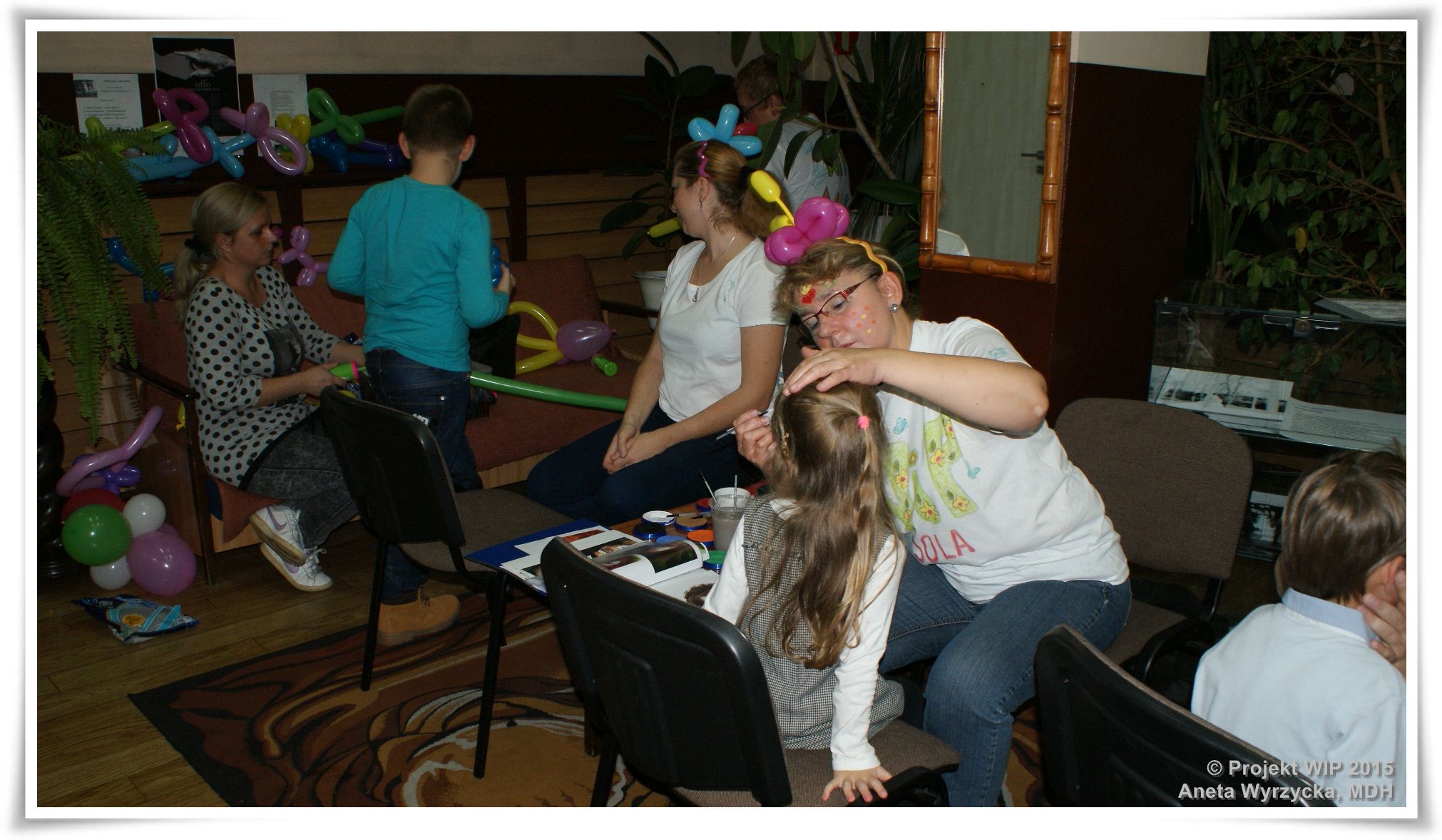 Dodatkowe atrakcje w postaci malowania twarzy i balonowego szaleństwa zapewnili uczestnicy projektu „WIP - Wszechmocny Instruktor Podwórkowy -zagospodarowanie czasu wolnego na mysłowickich podwórkach”. Animatorzy mieli okazję zaprezentować swoje nowe umiejętności bardzo wymagającym klientom. Kwiatki, serduszka lub pszczółki wybierały małe księżniczki lub królowe motyli. Natomiast szpady, miecze i pieski trafiały w ręce piratów, rycerzy czy też spidermanów.