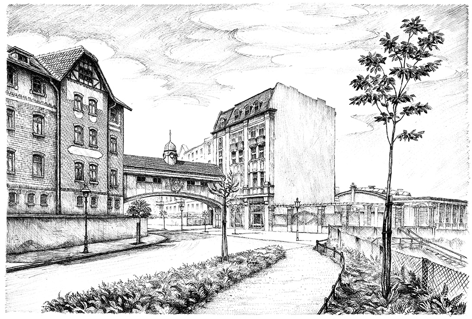 Ruch emigracyjny w Mysłowicach trwał od lat 60-tych XIX w. do wybuchu I wojny światowej. Emigranci pochodzili z terenów Europy Środkowo-Wschodniej oraz Południowej, z terenów Galicji oraz Królestwa Polskiego (Fot.14). W 1894 roku w Mysłowicach powstała stacja emigracyjna, którą prowadził do 1914 roku Max Weichmann. W tym czasie z Mysłowic odprawiono ok. 1,4 mln ewidencjonowanych emigrantów. Około 1910 roku wybudowano nowe budynki stacji emigracyjnej, a wraz z nimi nad ulicą zadaszone, murowane przejście, zwane przewiązką, ułatwiające odprawę emigrantów pomiędzy budynkiem agentury, a dworcem kolejowym (Rys.4).
